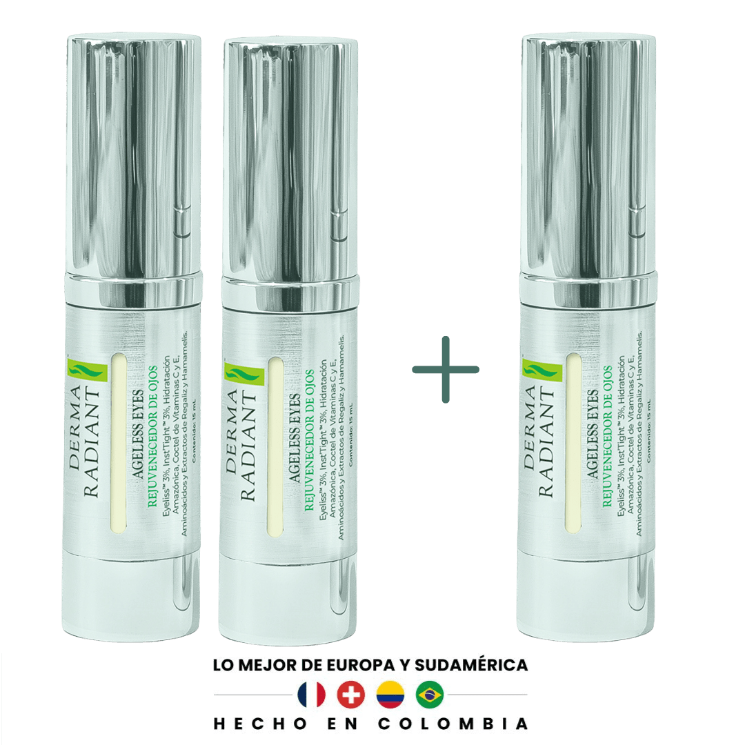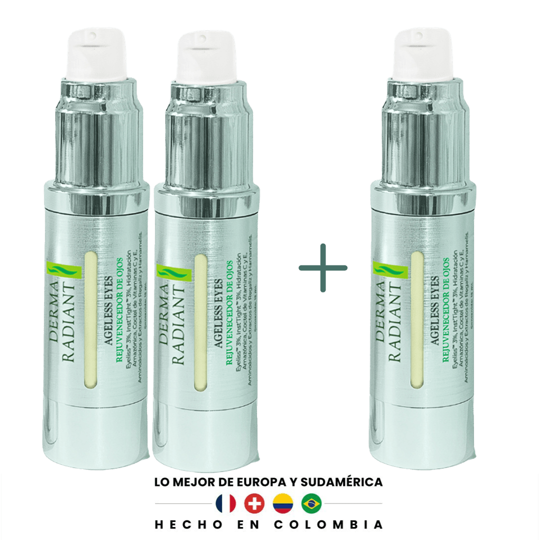 Ageless Eyes combina dos tipos de activos con funciones complementarias: uno con efecto visible en minutos y otro que actúa progresivamente para mejorar firmeza, tono y textura. A diferencia de muchas marcas que utilizan estos ingredientes en cantidades mínimas solo para hacer reclamos, nosotros igualamos o superamos las concentraciones empleadas en los estudios clínicos originales. El resultado: eficacia real y sostenida, sin atajos.